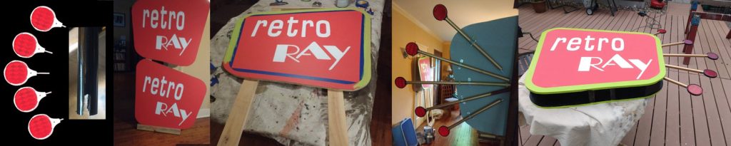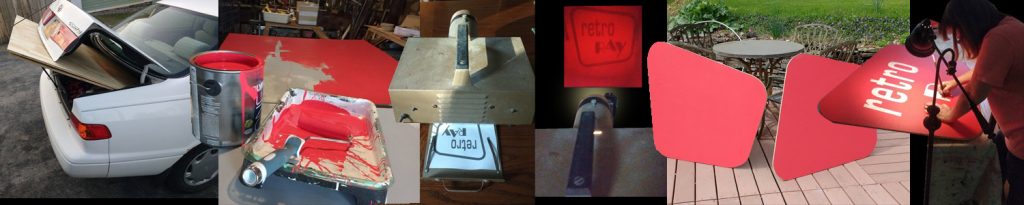 A sheet of plywood, a gallon  of paint, a couple cans of spray paint, a dusty opaque projector some scrap PVC pipe and five, count em, five driveway reflectors.